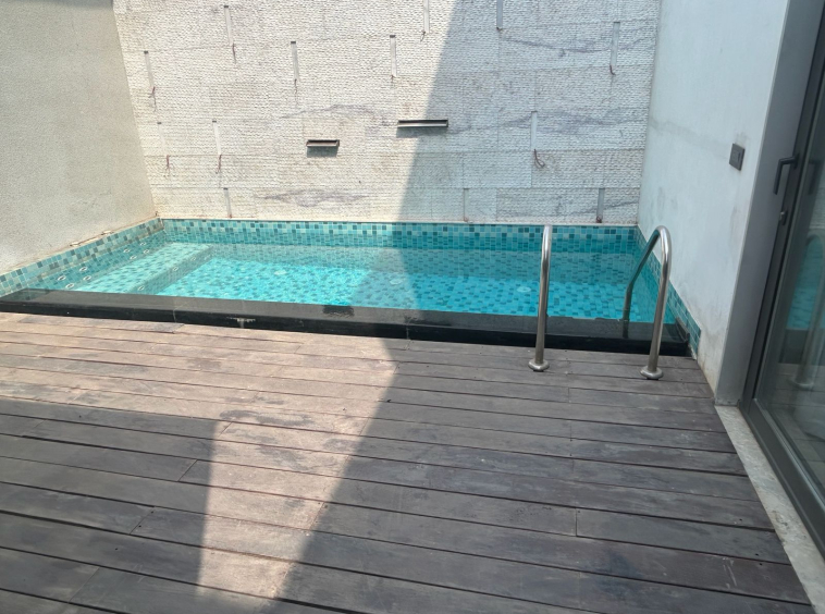 Amenities: Private swimming pool, lush green landscaped lawn, lift/elevator, private parking, and servants’ quarters.